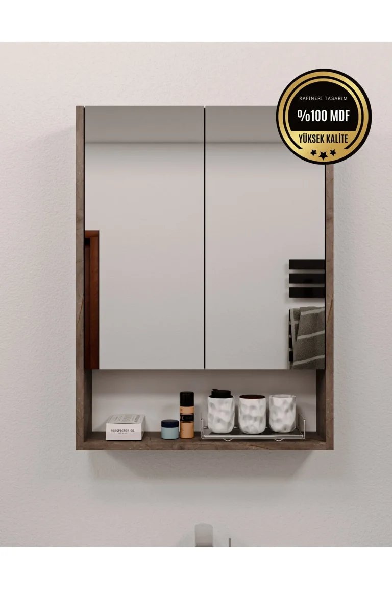 DF16104BR Lotus 2 Kapaklı Aynalı Banyo Dolabı Lavabo Üstü Dolap Çok Amaçlı Banyo Dolabı
