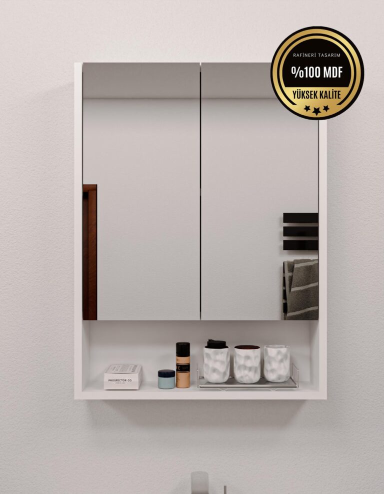 DF16104B Lotus 2 Kapaklı Aynalı Banyo Dolabı Lavabo Üstü Dolap Çok Amaçlı Banyo Dolabı