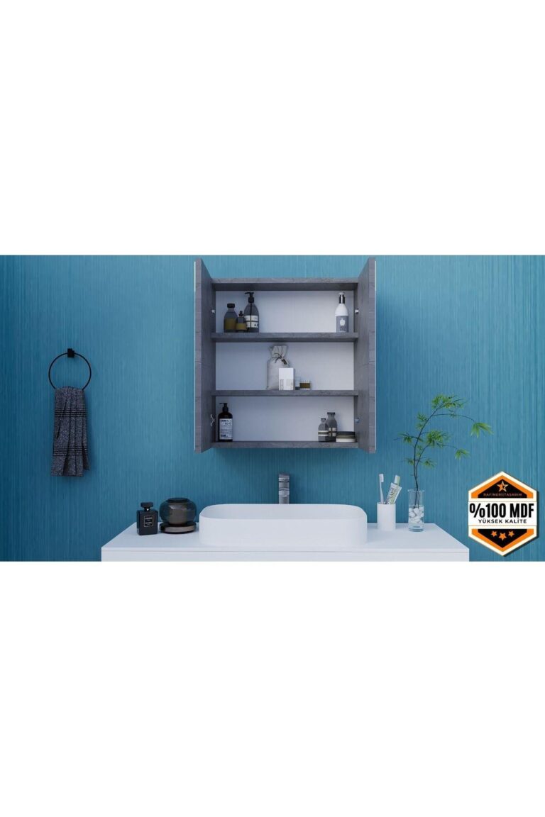 DF16104BD Lotus 2 Kapaklı Aynalı Banyo Dolabı Lavabo Üstü Dolap Çok Amaçlı Banyo Dolabı