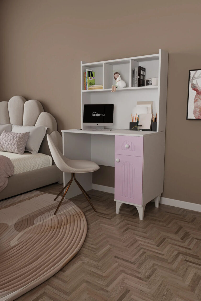 DF09105B Çekmeceli Membran Kapaklı, Kitaplıklı Çalışma Masası, Bilgisayar Masası