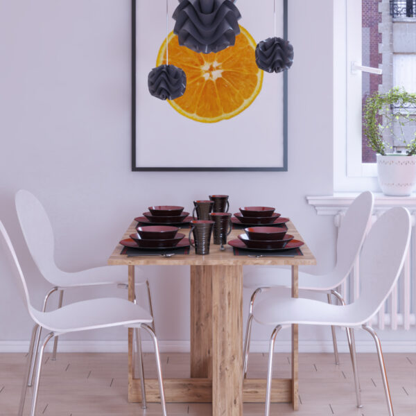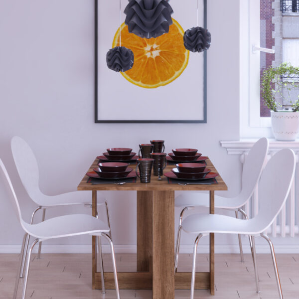 Modern tasarımı ve katlanabilir yapısıyla öne çıkan bu açılır yemek masası, kullanılmadığında duvara dayalı kompakt bir form alır, ihtiyaç halinde ise kolayca açılarak tam boy bir yemek masasına dönüşür. Küçük mutfaklar, stüdyo daireler ve minimal yaşam alanları için idealdir.