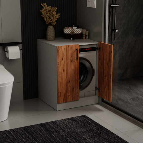 🧺 Modern Çamaşır Makinesi Dolabı – Kapaklı, Şık ve Fonksiyonel Banyo & Çamaşır Odası Dolabı