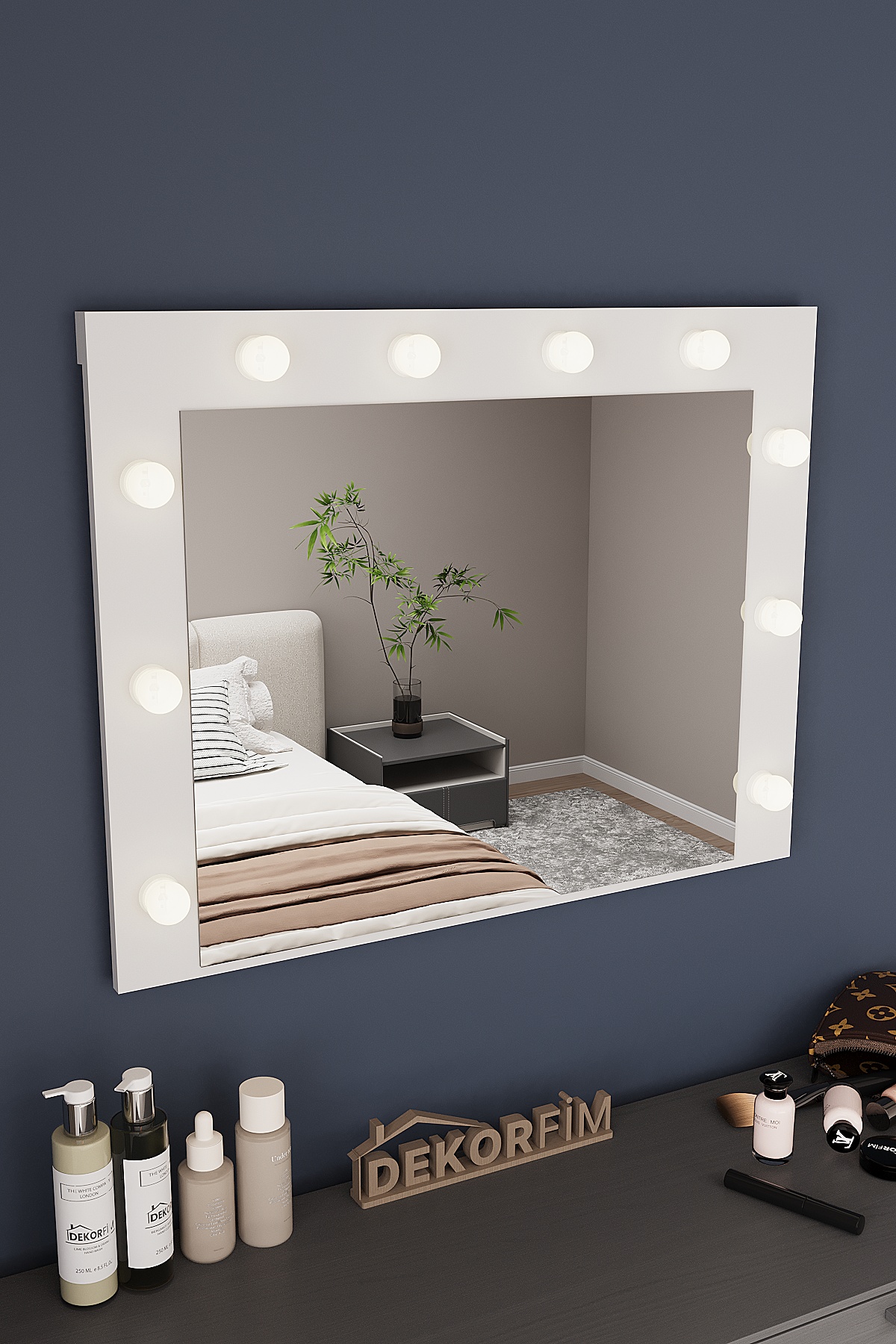 Modern çizgilere sahip DF06101 ışıklı makyaj aynası, sade beyaz rengiyle her mekâna ferahlık katarken güçlü LED aydınlatmasıyla profesyonel bir görünüm sağlar. Geniş yüzey ve alt raf detayı sayesinde hem estetik hem pratik kullanım sunar.