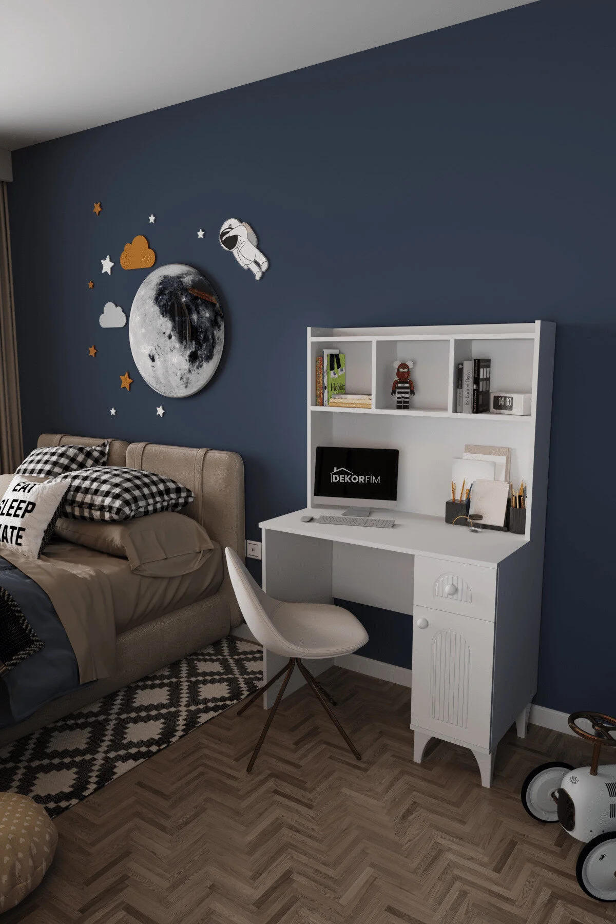 DF09105 Çalışma Masası, hem estetik hem de işlevsellik düşünülerek tasarlanmıştır. Çocuk odası, genç odası veya evde şık bir çalışma alanı oluşturmak isteyenler için ideal bir seçimdir.