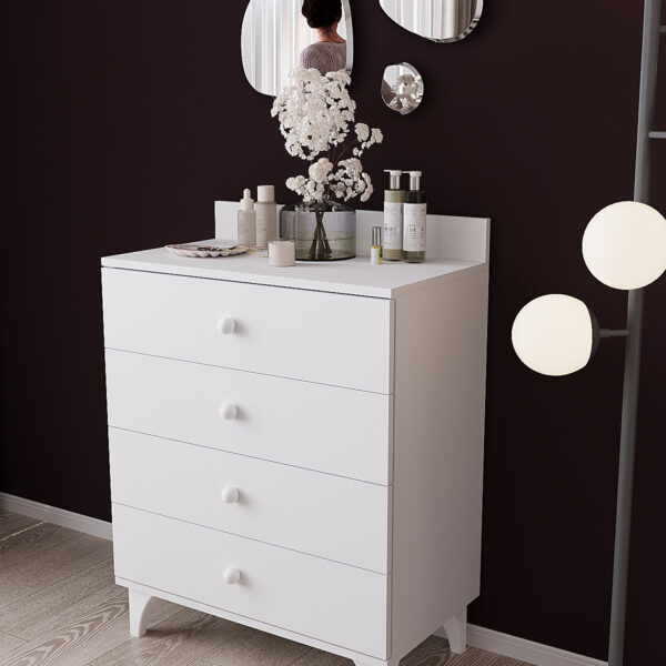 DF11101 4 Çekmeceli Şifonyer – Geniş Depolama Alanlı, Modern Beyaz Çekmeceli Dolap