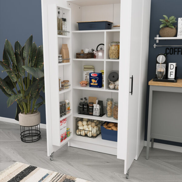 DF15105 Tekerlekli Kiler Dolabı – Kapak İçi Raflı, Geniş Depolama Alanlı Yüksek Raflı Mutfak Dolabı