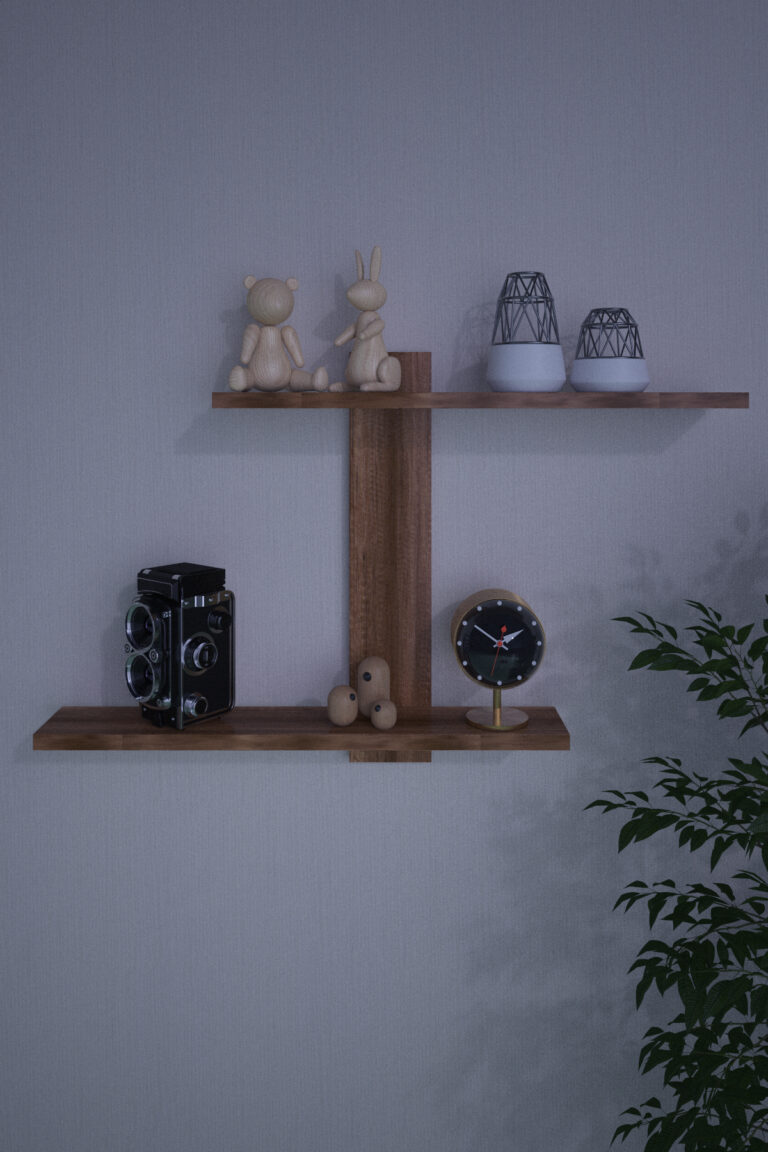 DF05104BR Dekoratif Z Raf Kitaplık Duvar Rafı İkili Raf