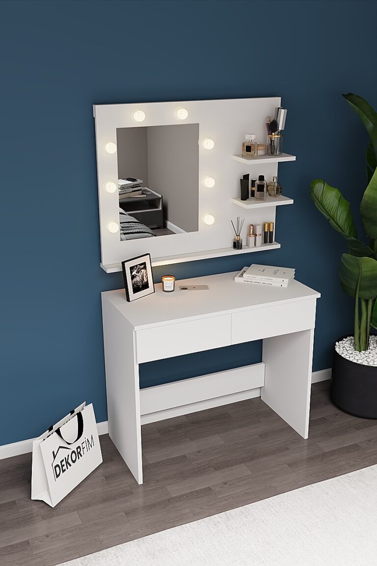 DF02111B Tokyo Hollywood Işıklı Aynalı İki Çekmeceli Raflı Makyaj Masası